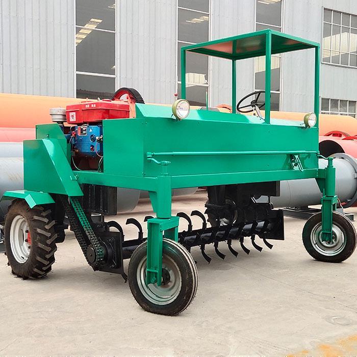 自走式翻堆機是生產(chǎn)生物有機肥專用成套設備中的主機,該機采取四輪行走設計,可前進、倒退、轉(zhuǎn)彎,由一人操控駕駛。行駛中整車騎跨在予先堆置的長條形肥基上,由機架下掛裝的旋轉(zhuǎn)刀軸對肥基原料實施翻拌、蓬松、移堆,車過之后篡成新的條形垛堆。即可在開闊場地,也可在車間大棚中實施作業(yè)。該機一大技術突破在于整合了物料發(fā)酵后期的破碎功能。隨著物料逐漸脫水,加裝破碎裝置的刀軸可有效地破碎肥料在發(fā)酵過程中形成的板塊,不僅省去了一臺粉碎機,更主要的大大提高了粉碎的效率,降低了成本。