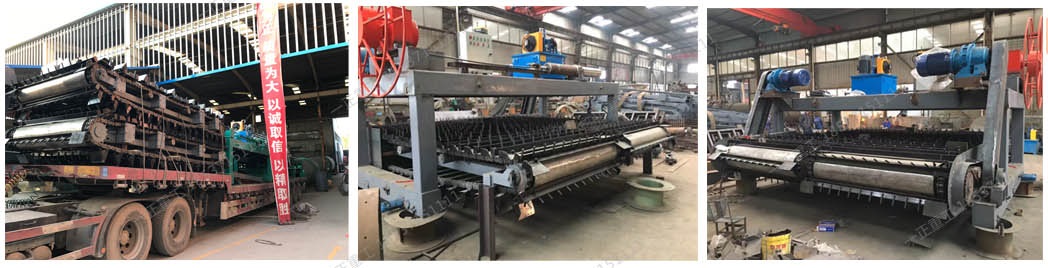 用途: 鏈板式堆肥翻拋機(jī)適用于畜禽糞便、污泥、垃圾等有機(jī)固體廢棄物的深槽好氧堆肥。該機(jī)沿發(fā)酵槽軌道行走作業(yè),其高效率翻拋?zhàn)鳂I(yè)有利于加快發(fā)酵槽內(nèi)物料發(fā)酵腐熟、降低水分和提高堆肥品質(zhì)。該機(jī)系列規(guī)格可滿足多種發(fā)酵槽寬度。